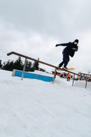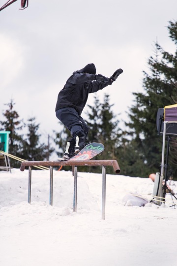 Vzhledem k tomu, že šlo hlavně o pohodové ježdění, potkat se s kámoši na horách, dát si pivko, panáka a ne o body do olympijské kvalifikace, tak jsme nechali partě volný průběh ježdění, ať jezdí co půjde a následně ze zapsaných vybrat tři nej snowboardisty, nejlepší holku a mladou krev. Kromě lokálních jezdců, kteří „snowpark“ zkoušeli už v pátek nebo následně sobotu, musíme zmínit po x letech opět nalezeného ztraceného brášku Honzu Gořolku, který ve svých 37 letech schoval do kapsy i mnohem mladší jezdce, tak samozřejmě Máru Rusze, mladého a starého Šerpu, Robinka, Švajzíka, Matouše Labudu, Ondřeje Sládka, Filipa Raszyka, Andrzeje Brudneho se synkem, Lukáše Ficka nebo mladou pušku Tobiáše Kluse, kterého ročník je 2010. U holek si to mezi sebou rozdaly dvě babenky, konkrétně Magda Adamcová a Daria Sobolová, ale všem dospělým vypálili rybník bratia zo Slovenska. Zapsalo se jich hned 7, ať už Prievidza represent Andrej Ondrejovič, z Martina Juraj Žilka nebo Šaňo Ferenčík, David Vlček z Banské Bystrice a Poprad gang Lukáš Jaroš, Samuel Šebest. Slovenské partě bychom rádi ještě jednou poděkovali, že vážili svou cestu k nám na východ, směr Severka, věřím, že jsme se neviděli naposledy, děkuji za všechny.
