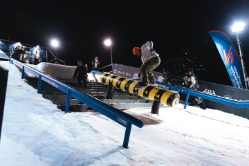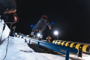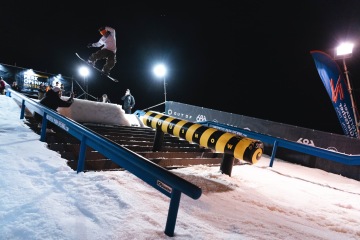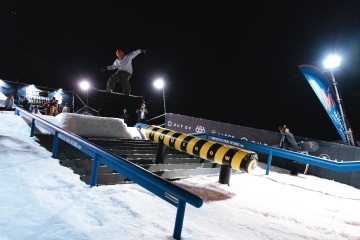 Ten, kdo zrovna neměl choutky věšet prádlo na railech, tak se mohl vydat do testovací vesničky u střední stanice gondoly a vyzkoušet nějaké ty novinky od snowboardových brandů na letošní sezónu. Vybírat určitě bylo z čeho a každý si tam mohl najít a otestovat svůj dream set up. Nás osobně nejvíce bavil stánek ROME SDS a prkno finského snowboardisty Rene Rinnekangase, které jako jedno z mála nabízí řešení i pro všechny lidi toužící po fakt úzkém stancu.