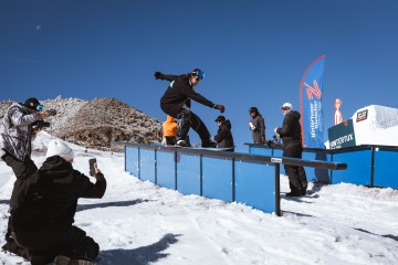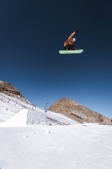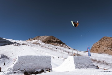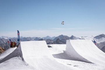 Pátek byl oficiálním začátkem akce a jezdce na ledovci přivítalo naprosto nádherné počasí a snowpark, který i přes tu všechnu bídu s nedostatkem sněhu vypadal fakt top! Sice kompletně chyběla spodní část parku, ale o to více si parta vyhrála s vrchní částí, která nabízela spoustu různých překážek a skoků. Nechyběl ani obrovský big air. Ten letos shapers vymysleli kreativně a postavili dva stejné kickery vedle sebe s možností všemožných transférů. Jednalo se o skvělý prvek, který byl zajímavý nejen pro jezdce, fotografy, ale také pro všechny přihlížející okolo.