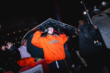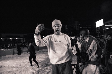 Po ježdění jsme všichni pofelili u lanovky a pomalu začali vyhlížet závěr sobotního dne v podobě velkolepé akce SANE METAL BATTLE. Dole u gondoly opět vyrostlo obří lešení se setupem, za který by se nemusela stydět většina českých snowparků a pozvaní rideři na nich naložili strašné pekla. Nejvíce to ale zabil Fridge, který na contest dorazil rovnou z wellnessu hotelu Bergfried pěkně v lázeňské stylu a celý večer to tam posílal v županu. Asi bychom to tady mohli rozepisovat celé hodiny, ale prostě si budete muset počkat na naše závěrečné video...