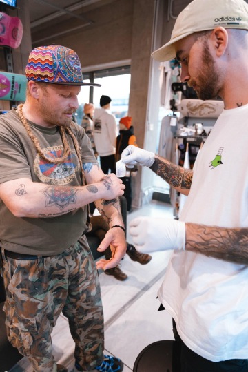 Tím ještě stále nekončíme! Po nákupu za částku vyšší než 3 000 Kč byla možnost navštívit náš Nafurt Tattoo Corner a nechat si vytetovat prkenou kérku. Jako zpečetění toho, že máš snowboarding vyloženě pod kůží.