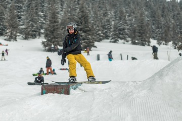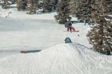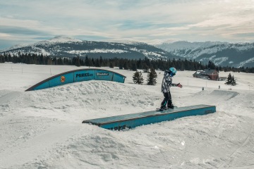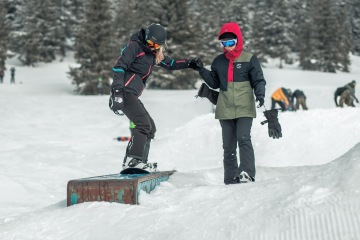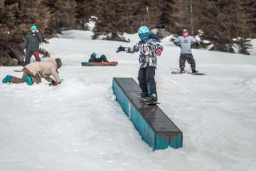 Další dny jsme se společně více stmelovali, soustředili se na naše slabé stránky a ze všeho nejčastěji jsme se učili nové triky ve snowparku na railech a bednách. I přesto, že z technických důvodů a přírodních vlivů nebyla tento rok otevřena horní část parku, jsme se rozumně prostřídali a vyřádili na části spodní. Seznámila jsem se také se spoustou nových lidí, kteří se mezi sebou hecovali do věcí, které by jen tak nezkusily. A o tom to taky je. Hrozně vám za to děkuji!