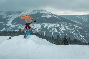 K mé zimě již několik let neodmyslitelně patří legendární Freestyle campy pod záštitou Parks.cz, které se konají na jednom z nejkrásnějších míst v Krkonoších, na Moravské boudě. Na vrcholcích Krkonoš u polských hranic najdete velkého nadšence Josepha, který na přírodním sněhu staví každý rok snowpark a snaží se rozšiřovat řady riders výukou ježdění a základů freestylu.