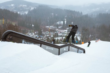 "Vítkovice před posledním dnem roku ale nebyly živeni jen snowboarding. Christmas Shred se stejně otevřenou náručí vítal i příznivce dvou prkýnek. Jak jsme do nebes vyzdvihli shapery, kteří nejspíš museli ke stavbě použít minimálně kouzelný proutek. Netuším totiž, kde dokázali ze zelených plání vyškrábat tolik sněhu, aby vznikl tak parádní snowpark! Tak mojí lyžařskou smečku musím malinko vytahat za ouška! Freeskierů jsme v sobotu v Krkonoších potkali asi tolik jako jaderných fyziků na festivalu slovanských tanců. Boarďáci měli jednoznačně hmatatelnou převahu a občas mezi nimi najít lyžaře připomínalo starý dobry hledání jehly v kupce sena. I tak se nás ale pár sešlo a všichni, kteří dorazili maj u mě body navíc! Já osobně ve Vítkách odpálil svojí letošní sezónu, takže než jsme vyrazil, tak sem ještě musel čelit svojí arachnofobický hrůze a úvést do provozu svoje lyže, které bohužel odpočívaly na půdě v pavučinové krustě. Podařilo se. I když počasí dělalo klasicky cavyky, tak den se nakonec vyvedl na 101%! V Best Trick Contestu musím vypíchnout zejména trio Michal "Pijénč" Klápště, Kuba "Kožak" Kožíšek a Dana Lhotu. Výhru si nakonec za bs switch up na zetku vykoledoval Kožak. A smysluplnou odpověď na hodnocení dne jsme vytáhl pro změnu jenom z Pijénče..."