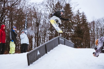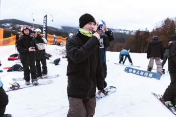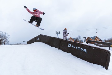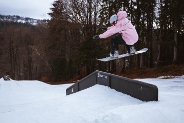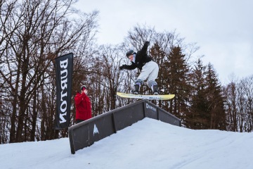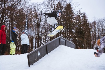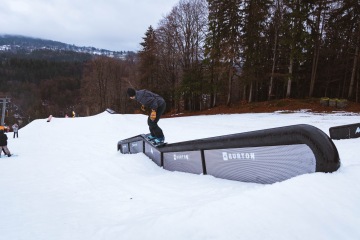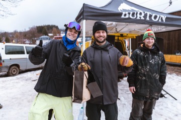 Deštivé ráno a né úplně optimistická předpověď na zbytek dne ale neodradila většinu riderů a postupně to na kopci začínalo žít. V jednu hodinu, kdy to vše mělo začít už nahoře nad snowparkem postávalo desítky jezdců připravených se pořádně rozdivočit na připraveném set upu, který tvořila jedna hlavní platforma s poctivým double kink railem, lámaným railem a bedýnkou pro ty nejmladší. Hlavně mladá krev se na akci ukázala ve velkém počtu, což nám samozřejmě udělalo obrovskou radost, která se ještě umocnila, když mlaďáci začali stříet jejich triky na všech překážkách hlavního set upu! Právě Kids Contest byl totiž prvním v pořadí první a na něj plynule navázal Best Trick Contest, který nebyl nijak věkově omezen a sázeli v něm všichni bez ohledu na věk a pohlaví! Celý den na kopci jsme poté společně zakončili během ollie contestu, který byl přehlídkou těch nejhezčích crashů v historii českého snowboardingu. Jako rozbít se při triplu na kickeru je docela easy, ale dát si totální faceplant při olíčku je umění se vším všudy a partě se to povedlo víc než jednou!