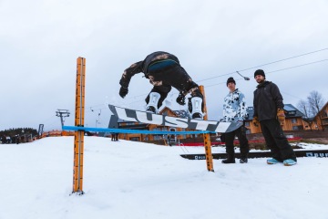 Ahoj, právě kvůli nedostatku sněhu se nám nepodařilo postavit obě nové překážky, chtěli jsme usadit ještě S- rail, který je další novinkou na letošní sezonu. Nakonec jsme byli rádi, že se nám povedlo usadit náš nový doublekink a ten si myslím, že všem sednul. Bohužel slabá vrstva sněhu nám neumožnila postavit nic velkého. Nicméně se akce povedla a díky tomu, že byl slush si to doufám všichni užili.