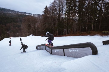 Burton snowpark je v tomto období tak na 50% plochy než za plného provozu, vše je o sněhu od Krakonoše a především o teplotách vhodných pro zasněžování. Upřímně bychom raději dělali první event sezóny v plné palbě překážek a skoků, ale to ze zkušeností a s ohledem na lokaci prostě nejde. Ale shapers crew se vždy snaží udělat maximum a jak se říká: ušít z hovna bič:-) Takže díky nejen shaperům, ale také rolbařům a zasněžovákům.