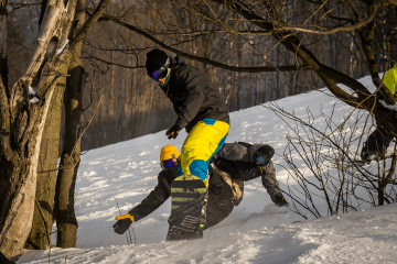 Plán zněl jasně: celotýdenní jízda začíná v pondělí odpoledne už na místě činu. Seznamování proběhlo pomalejším rozjezdem, takže součástí prvního večera byl především servis snowboardů. V rámci Test the Best si mohl kdokoliv z naší nové crew zapůjčit Arbor nebo Gravity snowboard a dát mu další dny pořádně zabrat. Následovala nezbytná součást prvního dne na horách – přednáška první pomoci. Tentokrát se jí zhostil náš brněnský kamarád a záchranář Kolda. A vzhledem k tomu, jak mrazivé dny nás čekaly, tak připomenout si chování na sjezdovce a ve snowparku rozhodně nebylo na škodu.