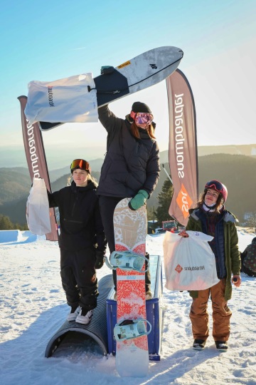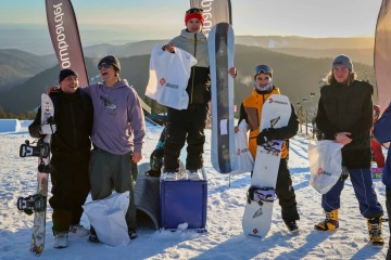 Celkem 52 účastníků rozdělenejch do 5ti kategorií předváděli jeden trik za druhým a usilovali tak nejen o nejlepší výkon, ale také o ceny v hodnotě 100.000,-, který dodal Snowboardel. Z holek pod 15let rozhodčí nejvíc zaujala devítiletá Mája s nadupanou jízdou, kde předvedla boardslide to fakie na bedně, switch frontside 180 na skoku, indy na corneru a frontside 180 indy dole na skoku. Z kluků pak její o dva roky starší brácha Jonáš s boardslidem na railu, backside 360 mute na skoku, grind frontside 360 out na pole jamu a boardslidem na rainbow bedně na závěr.