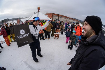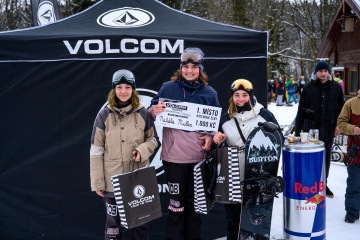 Nálada na kopci byla i díky konečně zimnímu počasí vynikající a těžko říci, zda k tomu přispěla skvěle postavená trať od one & only Krysáka, panák Volcomovice před každou jízdou, nebo snad touha ukázat se před kamarády, nicméně i z přiložené fotogalerie je více než zřejmé, že se účastníci především skvěle bavili a to je přesně to, o co ve Volcom Banked slalomu jde.