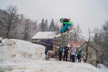 Wéna Kutil už od roku 2013 dělá na své zahradě DIY závody. Za dobu existence těchto závodu se už dělo spoustu věcí. Proskakovalo se skrz stromy, gapovala se cesta, skákalo se na střechu stodoly nebo se lítalo na obřím corneru. Dnes už má Wéna na své zahradě opravdový snowpark a funkční vlek a tak letošní závod měl charakter spíše “big airu”. Na místě se sešla početná partička z čech i ze zahraničí. Dost bylo keců, pojď si dát tento report, který máme přímo od Wény.