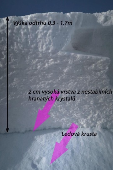 z krystalů sypkého hranatozrnitého sněhu, která se nacházela na ledové krustě. Samozřejmě určitou roli mohl hrát i předchozí průjezd, který mohl narušit celkovou stabilitu.
