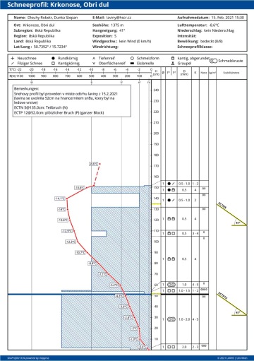 Poblíž místa nájezdu do žlabu byl proveden sněhový profil. Sněhových profilů bylo v Krkonoších v tuto dobu uskutečněno dostatek. Můžete se na ně podívat například zde: