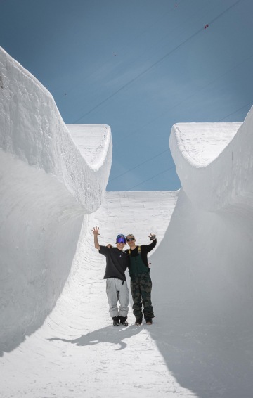 Atmosféra byla super. S většinou jezdců jsem se už znal ze závodů, ale letos na Nines pozvali i spoustu nezávodních riders ze streetu i backcountry, takže s těma sem se poznal až v průběhu týdne. Jelikož mě baví dost sledovat i freeskiing, tak sem měl tu možnost potkat i nějaký lyžařský kluky, se kterejma jsme se znali jen tak online a bylo hustý si s nima zajezdit. Nešlo o žádnej závod, takže atmoška byla trochu odlehčená a strašně jsem si to užil.