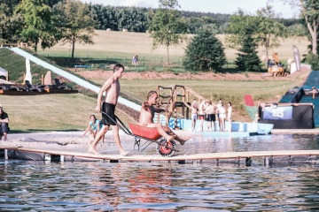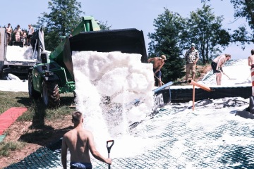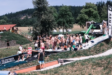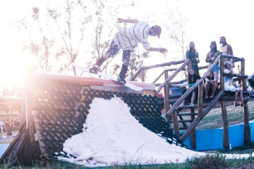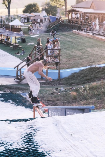 A v tomto areálu parta místních nadšenců a tak trochu bláznů dělá akci, která je ojedinělá nejen v ČR, ale troufám si říct i v celém světě. Protože během jednoho letního červencového víkendu se můžete projet na skatu v rampě, na kole v pumptracku nebo přes úzkou lávku, která je natáhnuta přes koupaliště. Můžete se nechat potahat na winchi na waku. Zahrát turnaj ve fotbálku nebo ve street basketbalu, ale hlavně si zajezdit uprostřed léta na opravdovém sněhu na prkně, či lyžích. Navíc si večer trsneš na plno super muziky a během celé akce poznáš plno usměvavých lidí, kteří to vibujou stejně jako ty. Zní to jako scéna z hollywoodského filmu, ale je to opravdu tak!