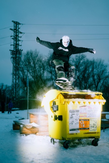 Street snowboarding má pro mě velkou hodnotu a myslím si, že je to jedna z nejnáročnějších variant snowboardingu vůbec. Zabere určitě víc času, přípravy a úsilí. Ať už je to hledání spotů, jeho příprava nebo realizace, kde se člověk neobejde bez kámošů, fotografa a kameramana. Hodně záleží na sněhových podmínkách a na tom, jestli tě nevyhodí policajti dřív, než stihneš spot vůbec postavit. Obrovskou roli určitě hraje psychika a pokud někdo nemá triky fakt na jistotu ve snowparku, tak by se o to neměl snažit na streetu.