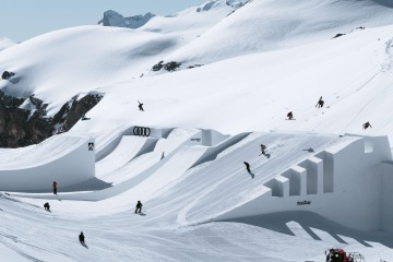 O setupu jsme psali minulý týden a letos to bylo teda něco! Organizátoři eventu do projektování tratě zapojili jednoho z designeru firmy Audi Sebastiana Gehwolfa a ten se postaral o naprostou multifunkční, futuristicky vypadající nádheru. Hlavní část tratě již tradiční megalomanksý step-up kicker mohli rideři dokonce jezdit z obou stran!