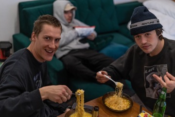 "Snowboardisty Dana s Romanem spousta z nás zná pod jménem Restless crew. Kluci nedávno vydali druhý streetový video s názvem Surprise. takže jsme se ptali na věci kolem natáčení projektu a tak celkově ježdění v ulicích. Pod Restless se ale skrejvá i oblečení, který kluci sami navrhujou a nechávaj šít či jinak upravujou - co všechno maj v arzenálu, jak se jim daří a co všechno tvorba obnáší? Prostor dostalo taky závodění, Dan má totiž v rukávu účast ve svěťáku ve slopestylu i snowboardcrossu, což ho nakonec odvanulo i k trénování a je teď nově trenérem juniorský freestyle reprezentace. Jak oba nahlížej na současnej závodní snowboarding a jak se jim daří přenášet lásku ke snowboardingu k mladejm nadějím?"