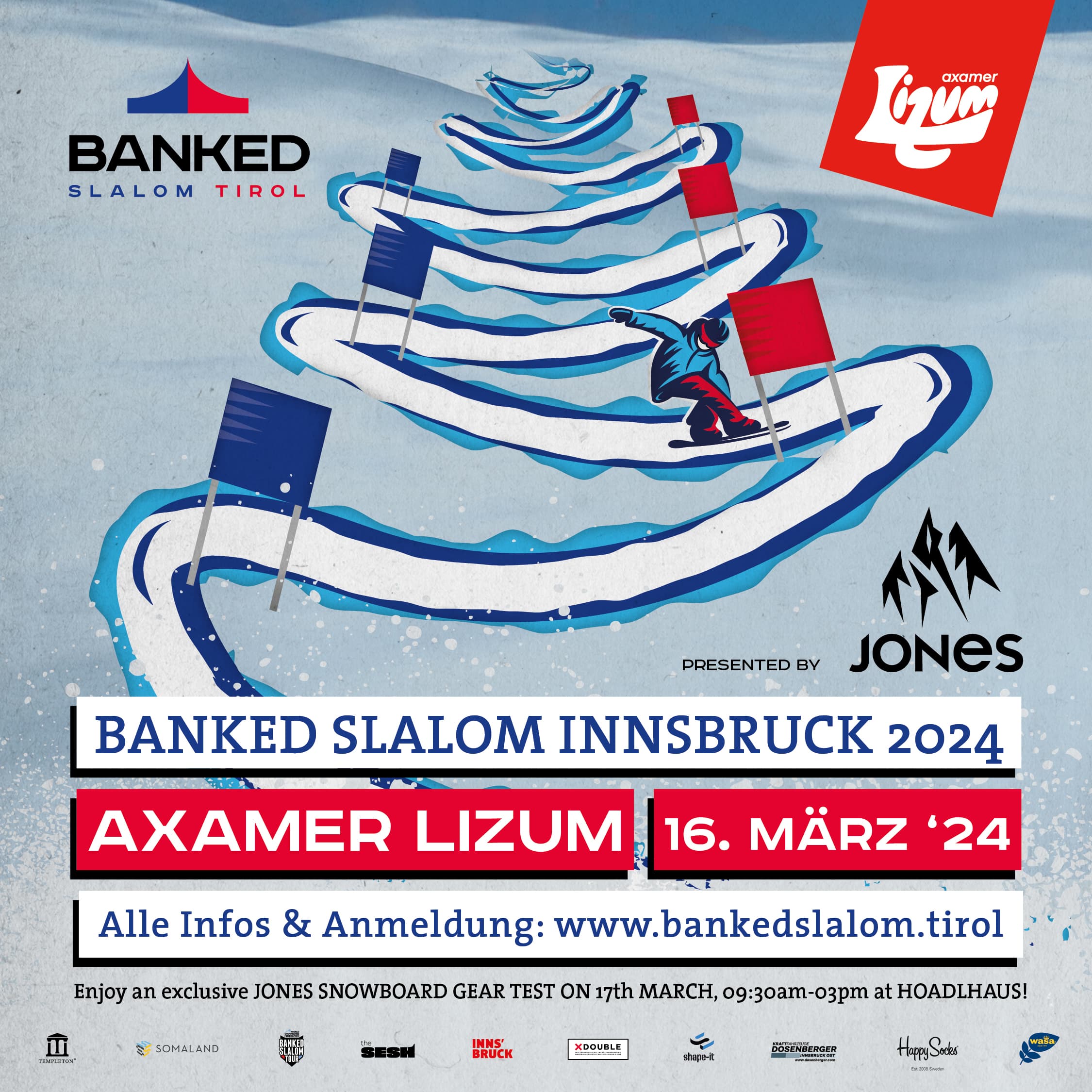 Jen několik kilometrů od Innsbrucku a perfektně dostupný veřejnou dopravou nabízí Axamer Lizum ideální terén pro závod Banked Slalom. Nedaleko sjezdovky se nacházejí perfektní terénní struktury jako základ pro stavbu trati. Na místě samozřejmě nebude chybět místní rakouská sebranka DJs, kterou si účastnící budou moci poslechnout v připravených chill-out zónách