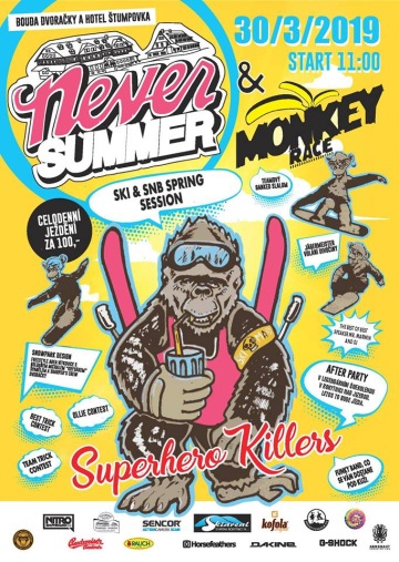 Rok se s rokem sešel a to znamená, že je tady opět závěrečná akce na Krakonošově zahrádce Never Summer 2019 & Monkey Race. Tato oslava snowboardingu a freeskiingu a zároveň legendární ukončení zimní sezóny proběhne v již všem známém pohodovém duchu v prostředí krásných Dvoraček a to v sobotu 30.3.2019.