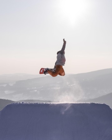 V kilometr dlouhém a osvětleném parku najdeš všechny možné variace skoků i několik nových railů. Máme vždy pět platforem v řadě a každým rokem park obnovujeme. Jedna jízda trvá cca 10min a lanovka jezdí od 9:00 do 16:30 = 225 skoků denně :)