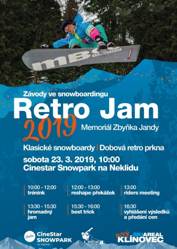 Vytáhněte staré kombinézy ze skříní a doražte v retro stylu na unikátní a taky poslední závod této sezóny na Neklidu. Podmínkou není prkno z dob minulých. Bude i kategorie new school, tak nezoufejte pokud ve sklepě nenajdete old schoolovou desku.