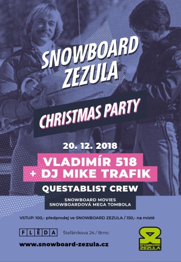 90. léta jsou zpět a to znamená jediný, starej dobrej snowboarding a párty v plné palbě! Obleč se na 30 MINUT SNOWBOARDOVÝCH MOVIES, za deset ka odjeď na novým prkně ze SNOWBOARDOVÉ MEGATOMBOLY, rap vostrej jak sníh za krk ti hodí Vladimir 518 + DJ MIKE TRAFIK a rozpustí tě show legendární brněnské QUESTABLIST CREW, která bude vztekle tavit gramce do rytmu tvýho tance!