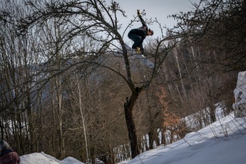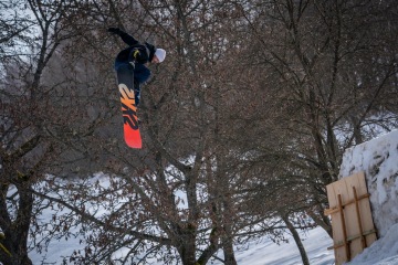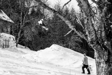 Ondra poprvé nebyl za kamerou a foťákem a okamžitě zamíchal s pořadím. Pokoutně Ondru sleduju jak si vede, protože stejně jako já strávil připoutanej k prknu už 25! let což je slovy čvrt století. Ani tahle doba mu ale v nadšenosti neubrala, pořád se učí nový triky a je to jednoznačně jeden z největších snowboardovejch nadšenců co znám. Samozřejmě už nasbíral mocný skillz a jeho triky cab5, fs7, ssbs5, bs5 mluví za vše. Ještě poslal front roll, ss method a nepočítaně stoosumdesátek a airů...
