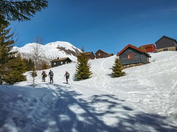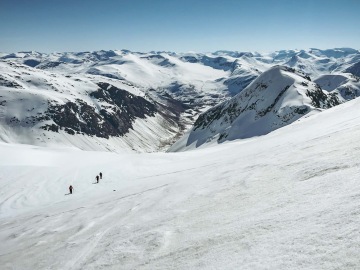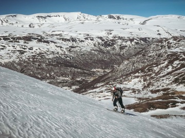 Norsko jsme si vybrali z více důvodů, tím hlavním byla návaznost na poslední projekt Iron Side Splitboard Movie, kterej kluci točili před pár lety a jedním z cílů bylo vylézt a sjet nejvyšší vrchol Norska Galdhøpiggen (což se povedlo) a taky to, že v Norsku drží sníh dost dlouho i na jaře, jelikož jsme se vydali na tento výlet na přelomu dubna a května. Chtěli jsme hlavně vidět a sjíždět svahy, které vedou až k fjordům, tak jak to známe z nejrůznějších videí. Tento rok se navíc uložilo všude extrémně moc sněhu, takže o ten nebylo nouze, naopak nám trochu dělaly starosti ne úplně stabilní lavinové podmínky. Na všechny kopce byla potřeba vyrážet brzo ráno, protože slunce do oběda rozpeklo všechny svahy takovým způsobem, že nebylo bezpečné je potom sjíždět a my se chtěli hlavně pobavit a ne řešit průsery... S tím jde samozřejmě ruku v ruce vybavení, schopnosti a dovednosti to vybavení umět použít, což jsme nikdy nepodceňovali a naštěstí jsme tedy použít nemuseli.