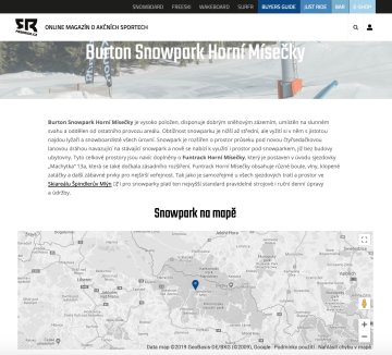 Každý snowpark má na mapě vlastní špendlík. Když na něj kliknete a dát "více" rozbalí se vám informační stránka, na které najdete: