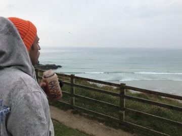 V den závodu jsme jeli heat o postup do semifinále. Každý v heatu měl 3 vlny. Když ji nechytneš, tvoje smůla, náhradní nedostaneš. Já se dostal celkem bez potíží na 2. místo v heatu a dostal se tak do semi, které byly další den. V Milově jízdě se asi stal zázrak a vzal vlnu. Díky ní se dostal na stejné skóre, které měl rider na 2. místě. Ale protože jeho skóre bylo za jednu vlnu, takže šel do semi. Whop Whop! Další den jsme teda byli ready na semi. Nebo vlastně ani moc ne, protože jsme si večer před tím řekli, že by bylo super hikovat na nejbližší horu a pak tu další. Když už jsme byli tak daleko, tak co dojít na tu další? :D Ale zpět k semi. Já zajel skóre kousek nad 8 a Mila měl zase problém s chytnutím vlny. Na vlnu se dostal, ale skrz inside sekci se nedostal, takže to nestačilo na postup. Finále se potom jelo v 8h večer. Proč ne? Protože mi svítilo od vody odražený slunce přímo do obličeje a neviděl jsem absolutně nic, hehe. A můj výkon byl srandovní. První vlnu sem nechytil vůbec (svádím to na Milův syndrom, kterej jsem od něj pochytil). Další jsem naštěstí vzal, ale nic extra jsem nepředvedl a při poslední jsem v polovině spadl, haha. Posral jsem, co se dalo, ale i tak to naštěstí stačilo na bronzovou medaili. Poprvý jsem si tak mohl užít „champagne shower“, haha.