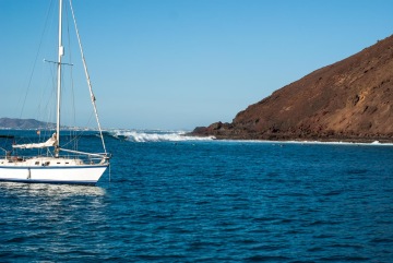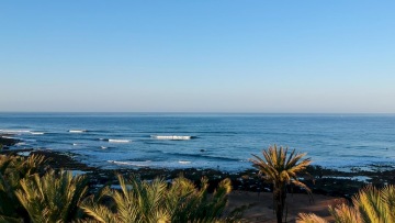 Ráno se znovu chystáme na včerejší spot, kam přejíždíme rovnou katamaránem. Bohužel trefujeme high tide a velikost vln přes noc dost narostla. Rozhodujeme se raději pokračovat v plavbě na původně plánovaný spot Playa de Famara. Během plavby neustále sledujeme na mobilech předpověď, která ukazuje až 3 metrový swell se 17 vteřinovou periodou a tajně doufáme, že to nebude až tak velké. Bohužel je předpověď tentokrát přesná a vlny jsou opravdu velké a to tak, že se i kapitán odmítá ke břehu s lodí přiblížit. Jeho slova zněla přibližně takto: “na to vám seru, dva týdny zpátky podobné vlny trhaly balkony ve třetím patře”. Postupně míjíme spoty Playa de Famara a Ghost Town a smiřijeme se s faktem, že dnes surfing nebude. Vyplouváme směr Los Lobos, abychom k tomuto legendárnímu spotu byli následující den co nejblíže. Kotvíme v Castillo del Aguila a vyrážíme z břehu objevovat lokální spoty a také na večeři (skvělý steak house). Hned ve městě nacházíme ve skalnaté zátoce zajímavě vypadající levačku, kde byli ve vodě dva místní surfaři. Většinu času sice jen pádlují, ale i tak padá rozhodnutí, že to zítra vyzveme na sunrise session.