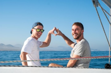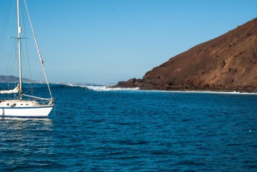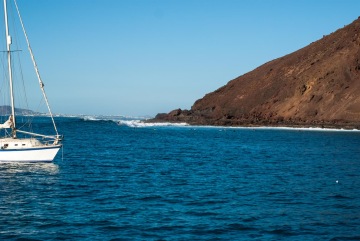 První den vyplouváme směrem k malému ostrovu La Graciosa na severu Lanzarote. Už po první hodině plavby se u některých členů projevuje mořská nemoc a začínají padat sázky na toho, kdo to hodí ven první. Sází se hlavně na dva favority - mě a Marťase. Potupnému nahnutí se přes palubu ale statečně vzdorujeme, jelikož přicházíme na metodu ležení na zádech, díky které úspěšně s mořskou nemocí bojujeme. Po 4 hodinách, lehce mučivé plavby ve vlnách, připlouváme k spotu Orzola, který jsme měli vytipovaný jako ideální na rozpádlování a první ježdění. Na místě ale zjišťujeme, že je to jeden velký closeout, který má navíc skoro dvojnásobné rozměry než určovala předpověď. Po rychlé poradě pokračujeme v plavbě na La Graciosa, kde kotvíme v malé zátoce u Playa La Francesa. Do západu slunce máme 2 hodiny, takže rychle házíme prkna do gumového motorového člunu a necháváme se vysadit na pobřeží odkud chceme pokračovat pěšky na severní část ostrova. Na pláži potkáváme místního surfaře, který přichází ze západní části ostrova, takže od něj ihned zjišťujeme situaci. Dostáváme tip na spot 10 minut chůze s upozorněním na mělký reef, ale friendly vlny. Na doporučeném místě se nám otevírá pohled na nádhernou zátoku se dvěma reefbreaky, neuvěřitelným okolím a nápisem na skále “Locals only”. Chvíli váháme, ale vzhledem k tomu, že jsme na místě úplně sami a blíží se západ slunce, rozhodujeme se do vody jít. Jsme odměněni dokonalou privátní session při západu slunce, na kterou nikdo z nás jen tak nezapomene, a to i přestože vlny nebyly větší než po prsa.