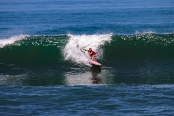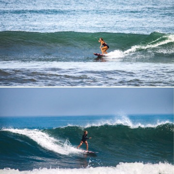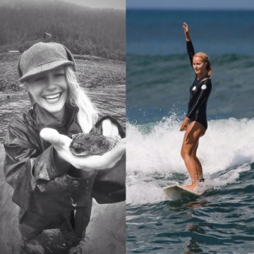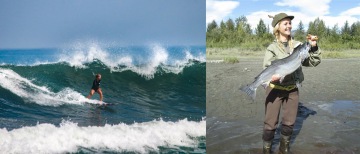 Ono je surf spíše jako muškaření – to je rybaření na mušku. Když jsem přijela na Aljašku, rozhodla jsem se naučit rybařit. Když jsem přijela na Bali, rozhodla jsem se naučit surfovat. Ani jedno neúmim pořádně, ale chytla jsem vlnu i rybu.