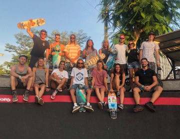 Parta z druhýho ročníku Advanced Surf Campu (+ pár kámošů z Canggu) v božím komplexu Amplitude. Najdete tu neomezený možnosti pro surfskate trénink.