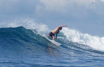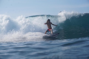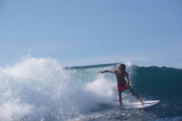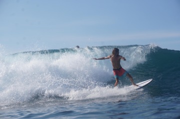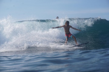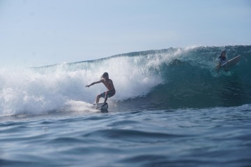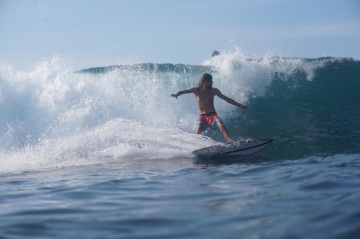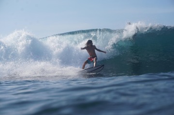 Balíčko nezklamalo a nadělilo konzistentní porci swellu během celého kempu. A pokud se bavíme o swellu, mám tu tip č.3: Nepotřebujete žádný monstrózní hovada a baráky. To si můžete jít rovnou nastrouhat záda na Padang Padang. Menší swelly jsou na progress lepší. Hledejte konzistentnost, resp. spoty, který fungujou i 5 hodin v kuse - jedna za druhou, jako přes kopírák. Délka taky nemusí bejt výhra - akorát se vysílíš pádlováním. Kór když se "náš surfing" skládá z 90% z pádlování a 10% jízdy ve vlně. I když je taková vlna menší, musí mít stěnu, face a nebo jednoduše koule (ideálně blízko břehu).