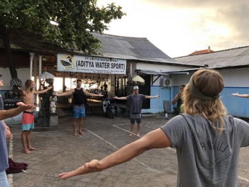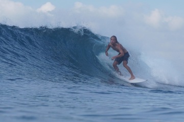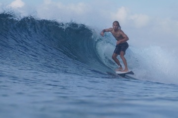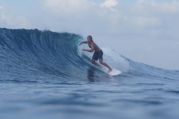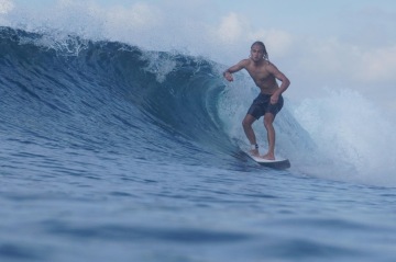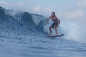 Další Kazumovo nezanedbatelnej přínos ve výuce je pozitivní přístup k surfování a všemu, co se surfováním souvisí. Jednoznačně to vychází z havajský nátury, kterou spousta z vás může znát třeba od Jamieho O´Briena. Smějete se na line upu, ve warungu, na baráčku, na motorce, u večeře…pořád! Tip č.5: I když je v tu chvíli vaše hlavní cesta k osvícení progress na surfu, nezapomínejte se u toho bavit a užívejte si každej moment, každej detail, každou blbost. Já na to zapomínám neustále!