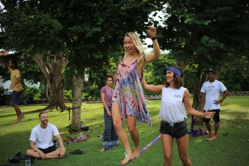 Můj balijskej domov byl a vždy bude Bali Bio Villas. Sami víte, jak je důležitý, abyste se ve světě alespoň na chvíli cejtili jako doma. Prostředí Bali Bio je boží, vo tom žádná. Ale nebejt pohostinnosti a servisu od teamu - René, Kristýna a Smíča, byl by to jen další stylovej surf house na Balíčku. A pokud se vrátíme k tipu č.2, nedokážu si představit lepší místo na chill, daleko od rušnýho Bali lajfu, a zároveň tak blízko na všechny supr spoty Bukitu. Místní yoga shalla navíc slouží jako perfektní tréninkovej spot s veškerým vybavením, klidný místo na yogu a meditaci a nově taky jako hala na pinčes. Za celej kemp jsme strávili stejnej čas s pálkama v ruce, jako s prknem ve vodě. Dokonce jsme vymysleli novou hru (teda pokud už neexistuje) s názvem Volley pong!