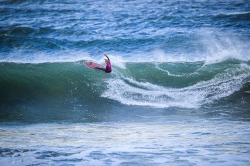 Na straně žen bych vybral Steph. Taky jednoduché. Stephanie Gilmore na Bells Beach vyhrála již čtyřikrát. Jediný homo sapiens sapiens, který ji v tomhle ohledu překonal je Gail Couper. Gail, rodačka z Melbourne, která závodila v sedmdesátých letech, vyhrála na Bells pětkrát. O to víc budu Steph fandit, aby zvonek na trofeji rozvonila ona a dotáhla tak Gailin rekord. Pokud královnu neuctíváte, zvolil bych Lakey Peterson. Lakey je na Bells doma, je to regulárka a její forehand je sakra nebezpečnej!