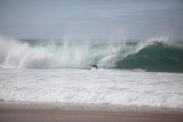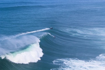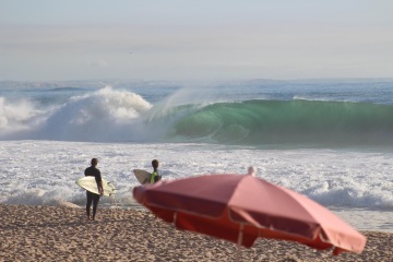 Hned další den jsme si udělali výlet do nedalekého Nazaré, kde jsme sledovali dvojici tow-in surfařů monstrózní kapalný sjezdovky.