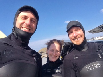 Překvapuje mě, jak je mi v ledové vodě teplo (jestli to tak jde napsat) a bez problému vydržíme cca 2 hodiny. V průběhu dokonce vykouklo slunce, což se ale opět změní, když se škrábem zpátky nahoru a padají kroupy J. Ale ten den to bylo naposledy, kdy pršelo!