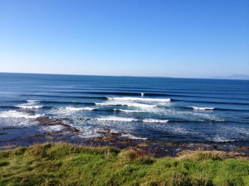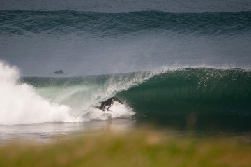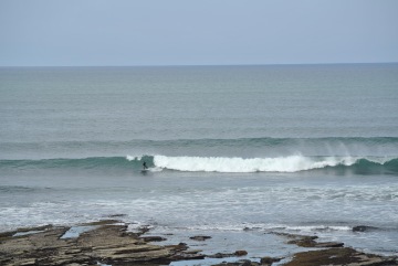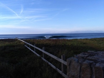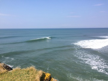 Vybíráme Pavlovu oblíbenou Lissadell, cca 20 minut jižně od Bundoranu. Dřívejší secret spot, ani dnes však toto nádherné místo nepřitahuje tak našlapané lineupy (na irské poměry), jako ostatní. Úzkou cestou mezi pastvinami dojedeme na útes, kde se přes reef roztahuje nááádherný, dlouhý A-frame s krásnou stěnou. Slézt prudký, promáčený útes mi zabere o fous dýl, než Pavlovi, který mi cestou dolů ukazuje vystouplou plošinu, které se vyhnout cestou z vody za high tidu, kdy to láká se dovézt pěnou až na pláž. Ve vodě jsme v 5 lidech, 2 postarší longboardisti berou to nejlepší, ale ve skillu a nehamouní, takže příjemný a přátelský vibe prostupuje celou session.