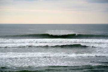 Dopoledne jezdíme za offshore slunečných podmínek, v obědové pauze na Gingerovici na zahřátí odpočíváme a znovu se soukáme do ledových neoprenů odpoledne, kdy už se zatáhlo a vlny se sice zvedly z head high na overhead, ale boční vítr jim ubírá ranní krásy.
