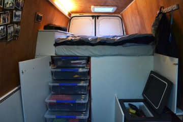 Co se týče přestavby tak celá proběhla během pouhých 7 dní v dílně jednoho místňáka Estebana, kterého jsme poznal přes jednu z fb skupin, kde se prodávají auta. Je to člověk, co se živí tím, že představuje dodávky na obytňáky a renovuje straší karavany. Ale taky nabízí svou práci v hodinovce na tvém autě s tím, že tě nechá pracovat v jeho dílně, používat jeho nářadí a poradí se vším, co potřebuješ.