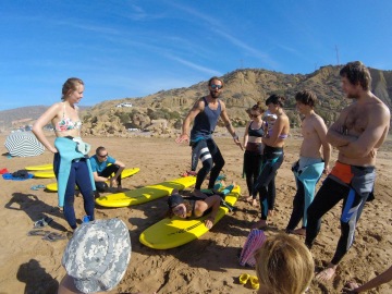 8:30 - se zbytkovým množstvím dopaminu a nízkou hladinou glukózy v krvi přijíždíme zpět na baráček, kde nás uvítá konečně upřímné dobré ráno od kemperů . Ti aktivnější měli možnost si přivstat a vyrazit s námi se pokochat „dospěláckými“ vlnami a dech beroucím východem slunce…bohužel většinou, když se k tomu někdo odhodlal, spot jako na potvoru ráno nefungoval a místo zážitku z velkých vln byli svědky nájezdu na první otevřenou cukrárnu s čerstvými zákusky.