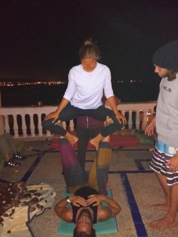 Možná to bylo atmosférou okolní stále ještě zaostalé kultury a architektury nebo nekonečným výhledem na hvězdnou oblohu, spokojenou myslí (kterou netížili trable všedních dní) marockým sladkýmjakcecek čajem, pár panáky ilegálně importovaných likérů, nebo vyhlášenou marockou čokoládou, ale člověk měl po tak náročném dni stále sil na rozdávání. A tak jsme kolikrát dlouho do noci hráli karty, zkoušeli acrojógu (Ondra s Barčou jsou totiž slovenskými průkopníky historicky nejbezpečnější akrobatické disciplíny) objevovali tzv. movement (doporučuji mrknout na idoportal.com, možná vás to chytne, hecovali nejrůznější fyzické a psychické hry nebo zpívali písně známé i neznámé.