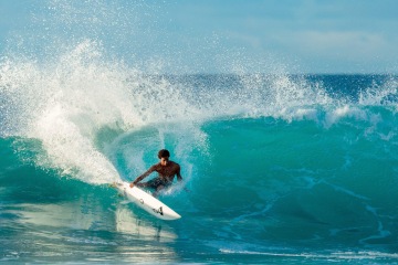 Micheal February je v podstatě ztělesněním sousloví stylový surfař. Jeho láska k netradičním mid-length prknům, na kterých nenajdete ani známku po grip padu, v kombinaci s dlouhou zkušeností s high-performance thruster agresivitou činí jeho klouzání po oceánské hladině uhrančivým. Mikey ve snímku ukazuje, jak krásně a na pohled bez námahy lze zkrotit nesmírnou energii oceánu. (Už se těším až napodobím Mikeyho přístup a energie oceánu mě protáhne držkou po reefu.)