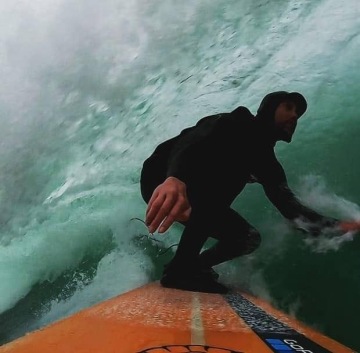 Tahle fotka a vlastně celá session na téhle vlně byly absolutní náhody. Výprava na jeden z nejlepších evropských bigwave spotů - Meňakoz se nezdařila, ale naštěstí mě lokálové pod příslibem mlčení vzali na tuhle úžasnou levačku. Místo, kde se vlna brala, bylo hodně scary, protože take off děláte prakticky pět metrů od útesu přímo před skálou. Taky mi dost připomínala rychlé slab vlny, takže o pády nouze nebyla a jak je vidět na fotce, tak prvních pár vteřin bylo hodně intenzivních, někdy i s airdropem. Tahle konkrétní vlna byla o to zajímavější, že jsem pod sebou měl jednoho z lokálů a musel jsem vše udělat precizně, abychom si nedali podvodní rande. Jen tak pro zajímavost to bílé prkno to nakonec nepřežilo, my všichni ano.