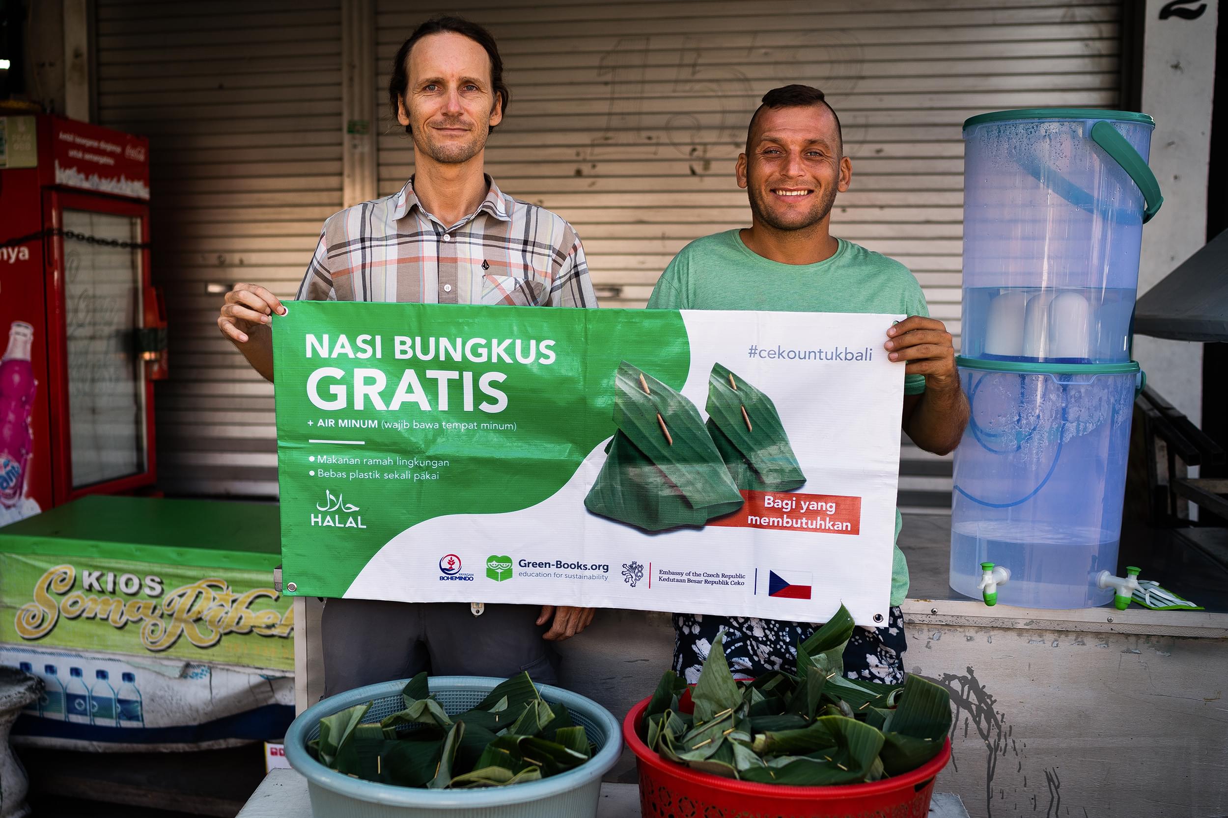 Petr: Pod záštitou ambasády České republiky a v koordinaci s honorárním konzulem ČR na Bali a rodilým balinézanem panem Gusde jsme vytipovali místa a zvolili způsob efektivní potravinové pomoci těm, kteří tuto pomoc nejvíce potřebují. Zatím jsme poskytli 2050 porcí “nasi bungkus” v oblasti severního Denpasaru a Padangbai. Do projektu se postupně zapojují i další čeští krajané dlouhodobě žijících na Bali, například Radka z OK Divers.