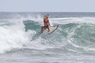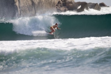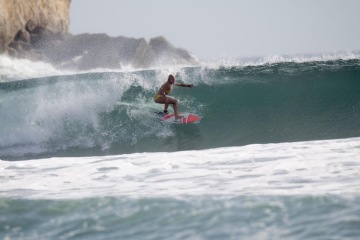 Na Kostarice miluju "Playa Grande", kde máš tak strašně moc kvalitních vln, že je to neuvěřitelné. Snažím se celkově zvětšovat své manévry, jelikož mám pořád takový malý cutback a spray. No a asi to nejlepší místo, kde jsem v životě byla je "Witches rock" na Kostarice. Musíš tam jet na lodi a je to tak magický místo s tou nejlepší vlnou, co si můžeš přát. Je specifická na barrely, takže tam se opravdu snažím ten první barrel mít. Už jsem k tomu byla blízko tak snad příští sezónu to dám.:)